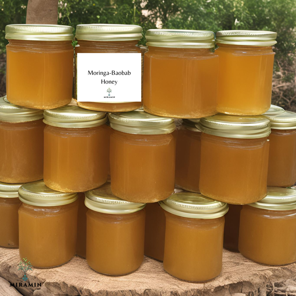 Indulge in the extraordinary Moringa-Baobab Honey, a premium delight straight from Ghana’s lush landscapes. This unique honey marries the nutrient-rich magic of moringa with the vibrant superfruit baobab, delivering a burst of flavor and health benefits. Hand-harvested and gently processed, every jar preserves the pure essence of nature. Enjoy its sweet, tangy taste with a subtle earthy twist, making every spoonful a luxurious experience. Elevate your pantry with this one-of-a-kind honey, where tradition meets taste.