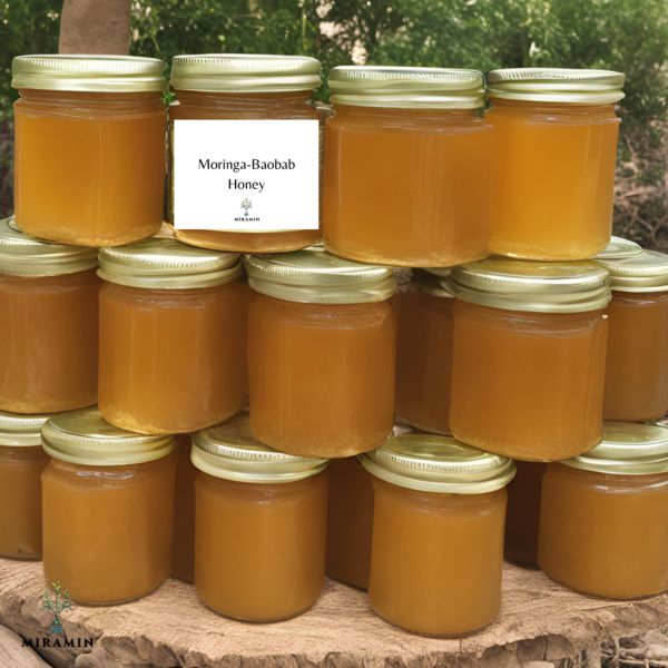 Discover the unique blend of Moringa-Baobab Honey, a premium product sourced from the lush landscapes of Ghana. This exquisite honey combines the nutritional powerhouse of moringa and the superfruit baobab, creating a rich, flavorful, and nutrient-dense honey. Hand-harvested and minimally processed, it retains all its natural goodness, offering a sweet, tangy taste with a hint of earthiness.